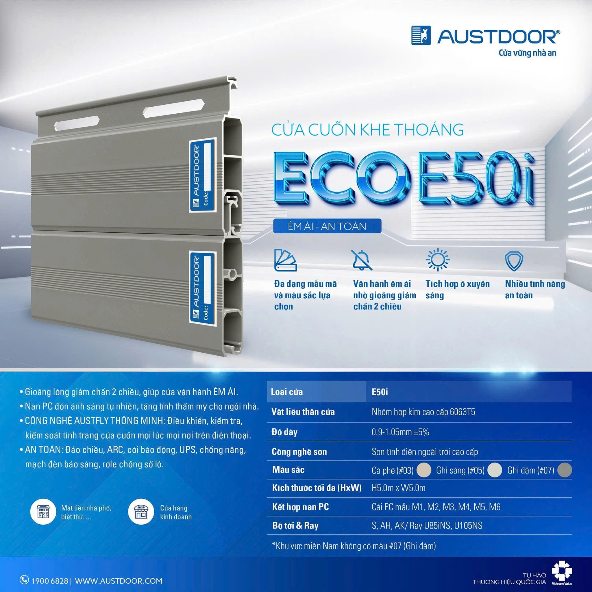 Liên hệ trực tiếp hotline 0373266988 - báo giá tư vấn miễn phí, giảm 30% công thợ khi lắp đặt cửa cuốn ECO E50I tại Austdoor.org