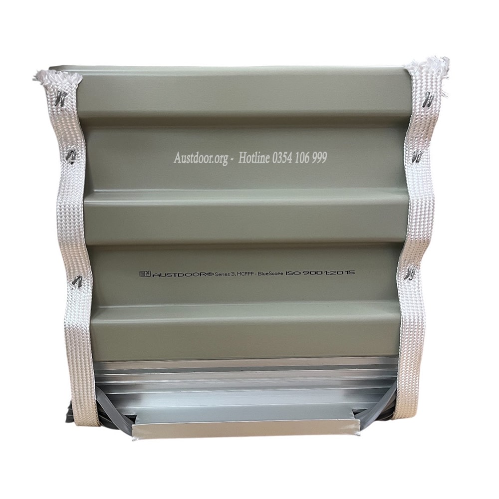 Chất liệu thân cửa cuốn được làm bằng thép hợp kim mạ nhôm kẽm AZ60, 70, 100, AZ150 Colorbond của hãng BuleScope Steel – Australia có tỷ trọng thân cửa cuốn thấp (5kg/m2) và hệ thống lò xo trợ lực luôn cân bằng trọng lực thân cửa giúp cửa cuốn thép Tấm liền Aust Roll di chuyển nhẹ nhàng và rất có thể dừng ở bất kỳ vị trí nào.