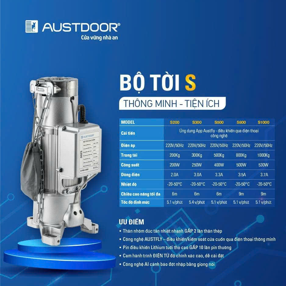- Thông số kỹ thuật nổi bật của bộ tời Austdoor S